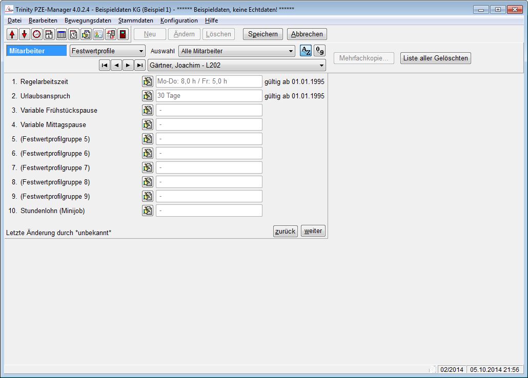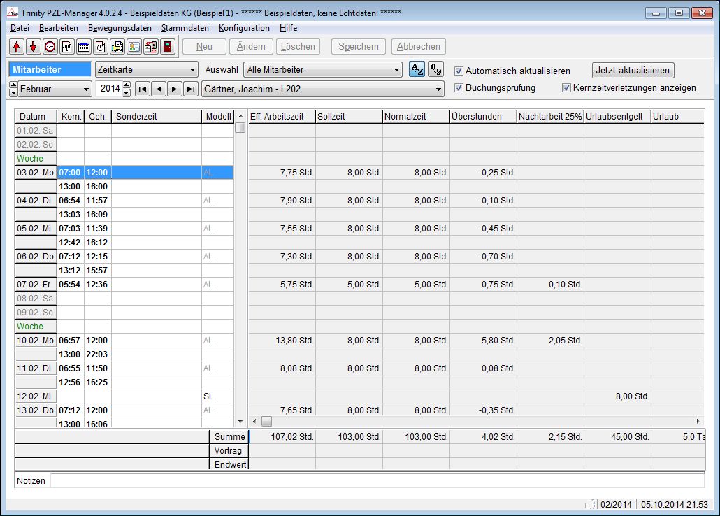 Stammdaten. Hierdurch können auch "exotische" Zeitmodelle korrekt abgerechnet werden.
